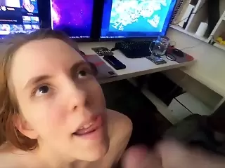 Oral with cumshot on pretty girl while trying to5:38